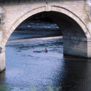 There were also a couple of day trips. On Saturday, 1st August, the whole camp travelled by coach to Berwick Upon Tweed to catch a train Ito Edinburgh, where a packed lunch was had in Prince Street Gardens. Several of the Scouts visited the swimming pool, which probably had the highest chlorine levels in history and where David Gordon demonstrated how to swim the front crawl with one leg out the water. They then walked back into town through Holyrood Park. There was also a visit to Tisos in order to buy canoe paddles. Another day trip took place on the 30th July when the troop (in full Scout uniform) took a coach to visit Melrose Abbey and Galashiels. They were also meant to be visiting Abbotsford (the home of Sir Walter Scott), but this was abandoned when it became clear that most of the Scouts were more interested in sweet shops than culture.